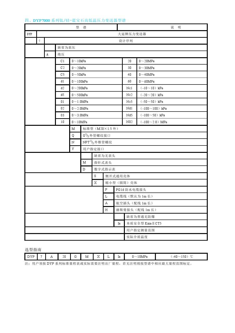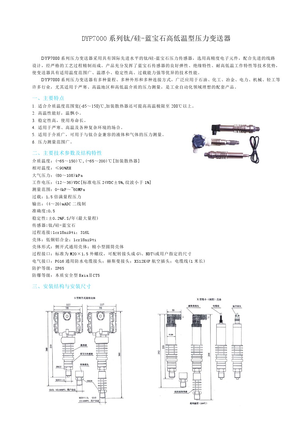 DYP7000系列鈦 硅-藍(lán)寶石高低溫型壓力變送器