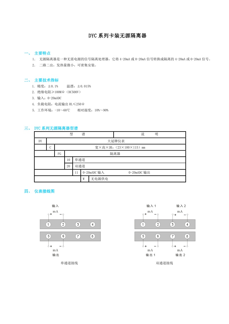 DYC系列卡裝無源隔離器