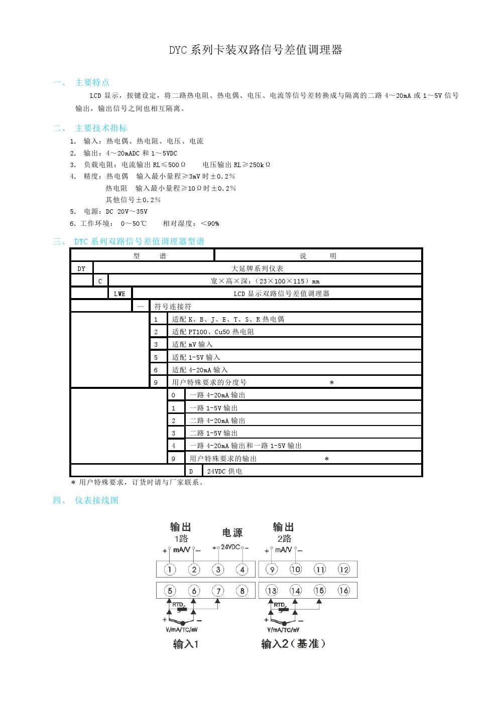 DYC系列卡裝雙路信號(hào)差值調(diào)理器