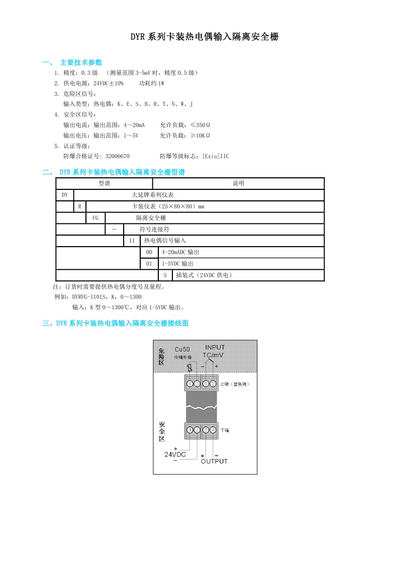 DYR系列卡裝熱電偶輸入隔離安全柵
