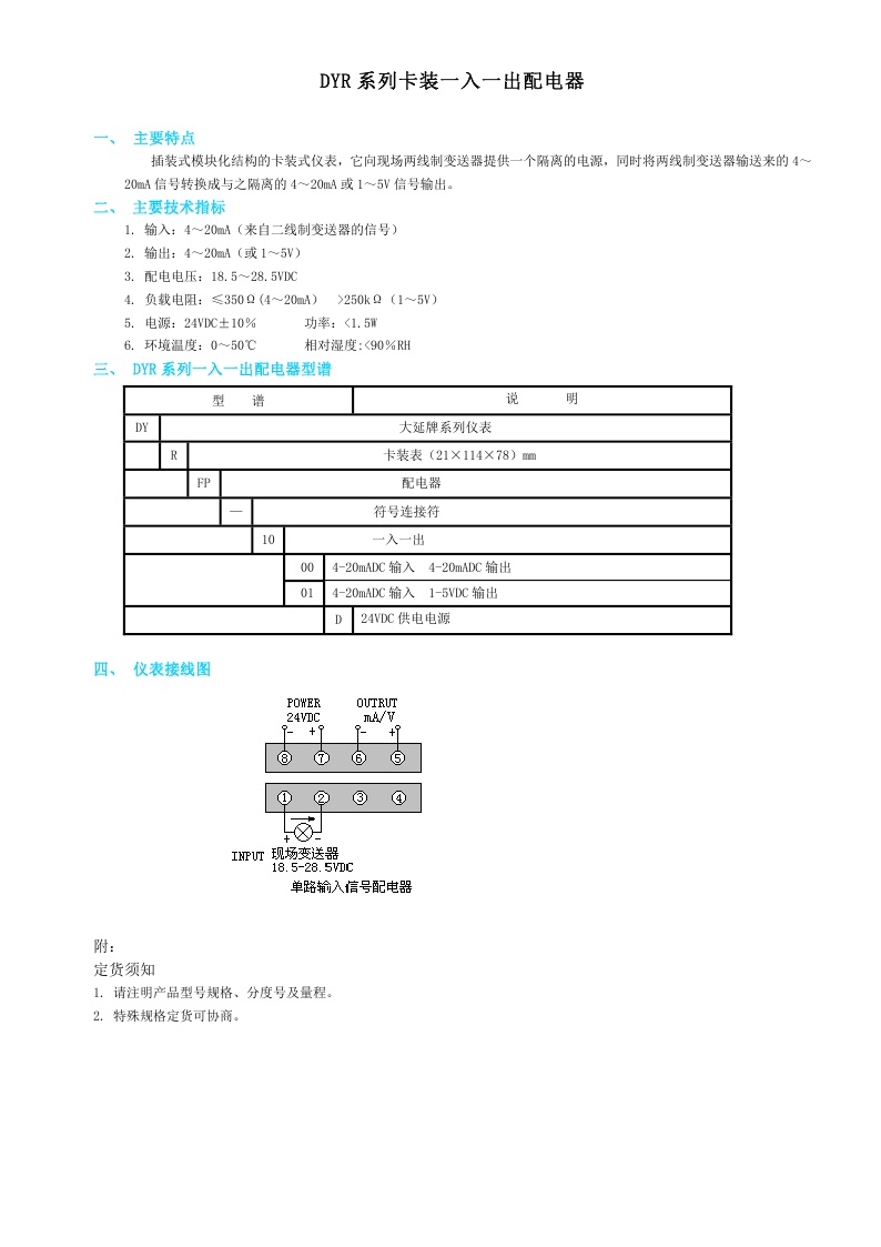 DYR系列卡裝一入一出配電器