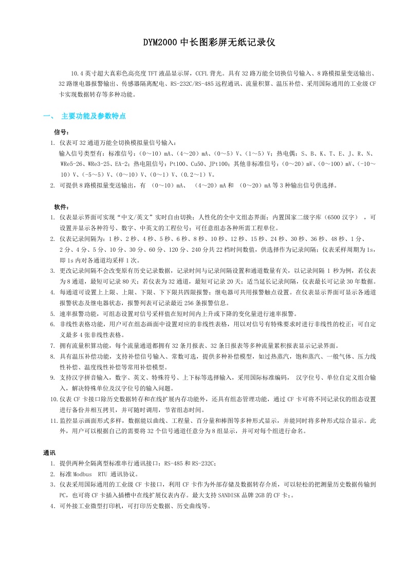 DYM2000中長(zhǎng)圖彩屏無(wú)紙記錄儀