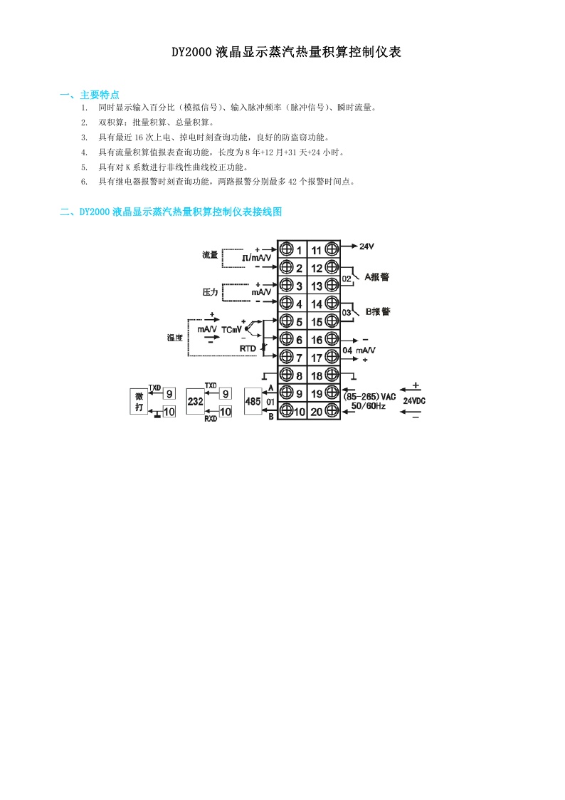 DY2000(SL)液晶顯示蒸汽熱量積算控制儀表