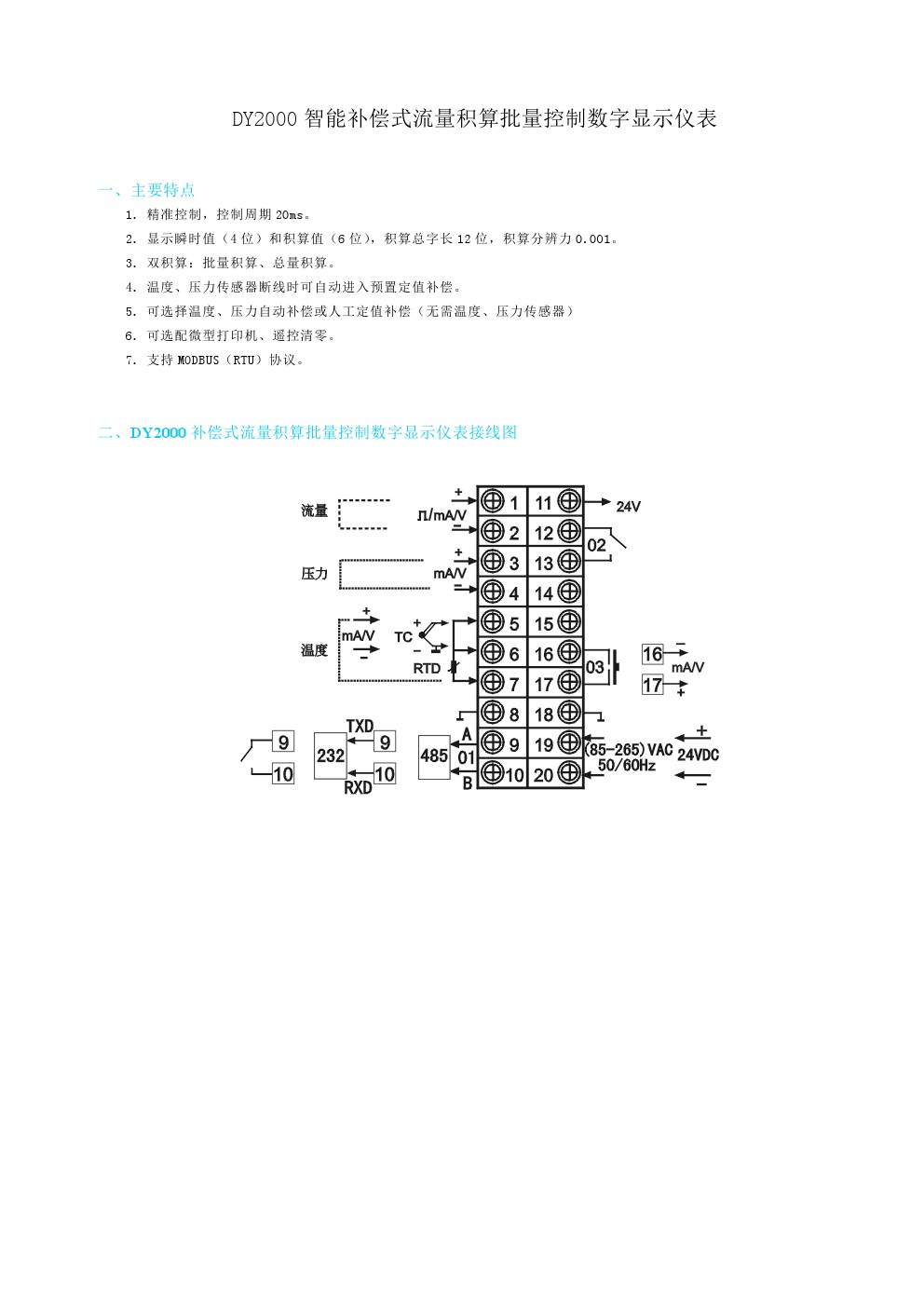 DY2000流量積算儀表