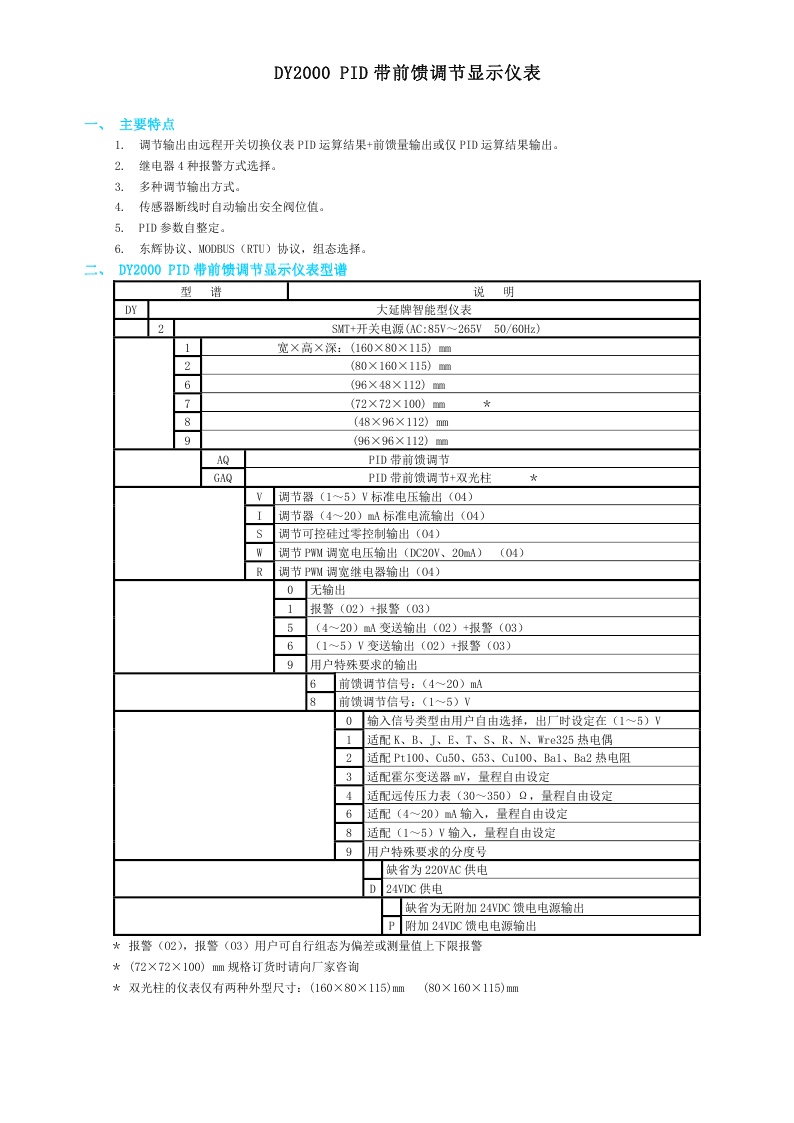 DY2000(AQ)PID帶前饋調(diào)節(jié)顯示儀表