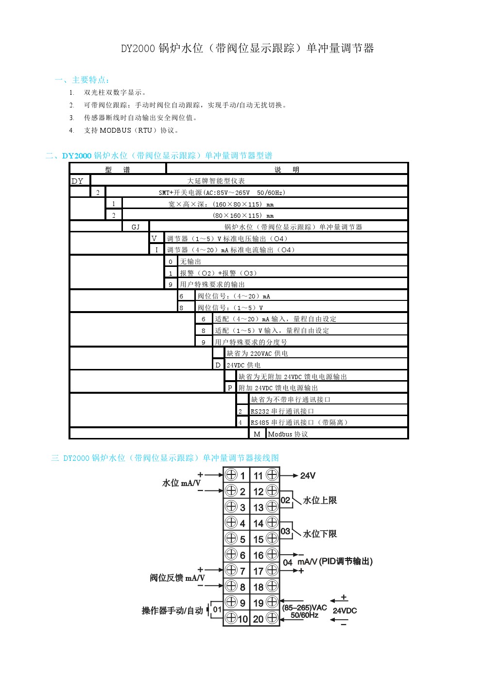 DY2000(GJ)鍋爐水位(帶閥位顯示跟蹤)單沖量調(diào)節(jié)儀表