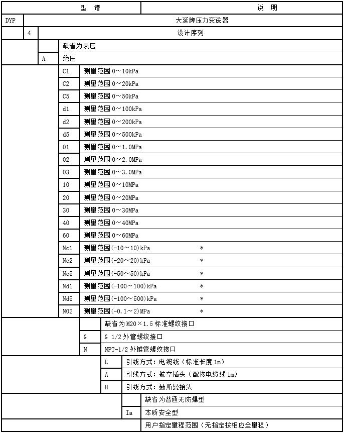 四、 DYP4000系列精小型擴(kuò)散硅壓力變送器型譜